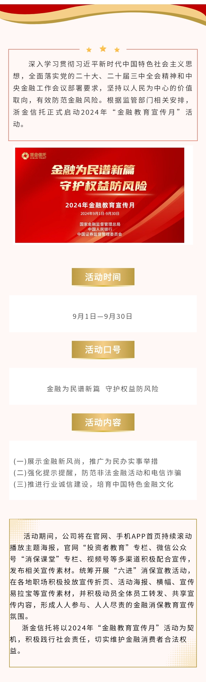 消保活動 | 浙金信托正式啟動2024年“金融教育宣傳月”活動